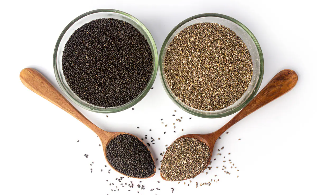 7. चिया और तुलसी के बीज: हाइड्रेशन और फाइबर बढ़ाने वाले