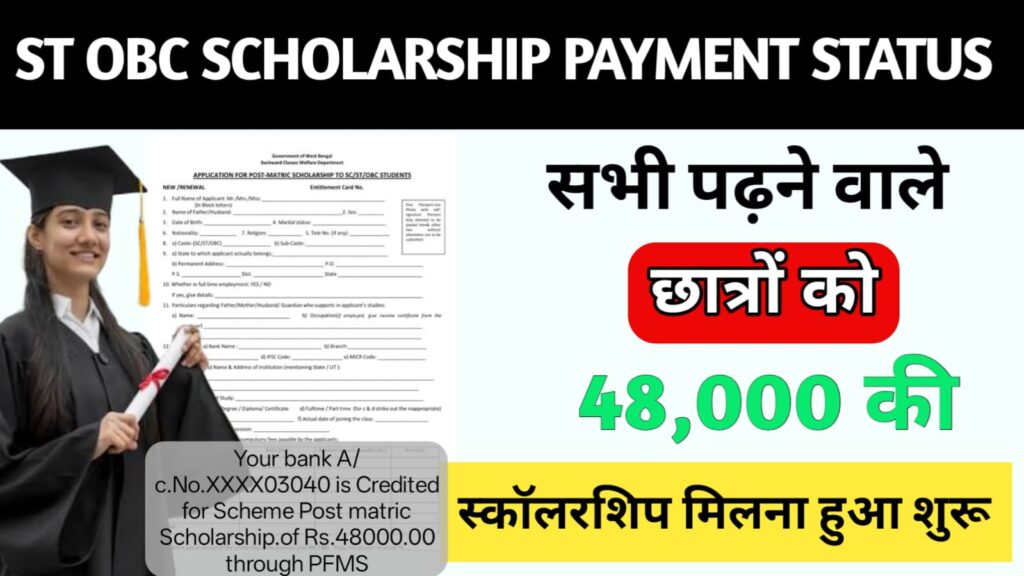 SC ST OBC स्कॉलरशिप ऑनलाइन अप्लाई 2026: SC, ST और OBC कैटेगरी के लाखों स्टूडेंट्स को हर साल फाइनेंशियल दिक्कतों का सामना करना पड़ता है, जिससे उन्हें अपनी पढ़ाई की चिंता होती है। ऐसी स्थिति में, सरकार द्वारा चलाई जा रही स्कॉलरशिप योजनाएं इन स्टूडेंट्स को मज़बूत सपोर्ट देती हैं। SC ST OBC स्कॉलरशिप ऑनलाइन अप्लाई 2026 योजना के तहत, एलिजिबल स्टूडेंट्स को ₹48,000 तक सीधे उनके बैंक अकाउंट में ट्रांसफर किए जा रहे हैं, जिससे उन्हें पढ़ाई से जुड़े खर्चों में काफी राहत मिल रही है। यह रकम सीधे DBT (डायरेक्ट बेनिफिट ट्रांसफर) के ज़रिए भेजी जा रही है, जिससे स्टूडेंट्स को पारदर्शिता और समय पर फायदे मिल रहे हैं। जिन स्टूडेंट्स के एप्लीकेशन और डॉक्यूमेंट्स SC ST OBC स्कॉलरशिप ऑनलाइन अप्लाई 2026 योजना के तहत पूरी तरह से वेरिफाई हो गए हैं, उन्हें बिना किसी देरी के पेमेंट मिलना शुरू हो गया है। इसलिए, सभी एप्लीकेंट्स के लिए अपनी स्कॉलरशिप का स्टेटस चेक करना बहुत ज़रूरी है।